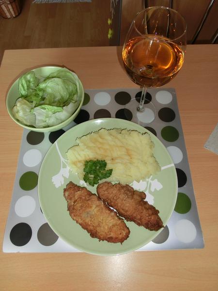 My sme dnes mali na obed len takú rýchlovku .... zeleninkovú polievku na masle a kuracie rezne v dvojobale, zemiaková kaša a ľadový šalát .... no a ten pohár tokajského vínka pripíjam aj na vaše zdravie s prianím, aby ste sem ešte dlllllllho dávali také super receptíky, ktorými mi uľahčujete dennodenné rozhodovania čo variť ... Ďakujem za túto tému a vás v nej ... čin čin ... 😉