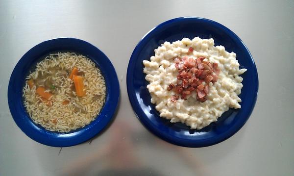 ..kelova polievka, pecene zemiaky a duseny karfiol...