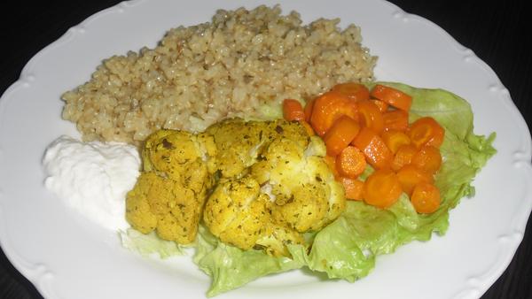 len na obalenie som použila sol, sezam,kurkumu,slnečnicové a lanové semienka,petržlenovú vnat všetko posekané v mixeri k tomu pečená mrkva, ryža natural a jogurt s kokosom a ono to bolo aj celkom jedlé 😀 dokonca moj muž silný masožravec si dal aj duplu 😉