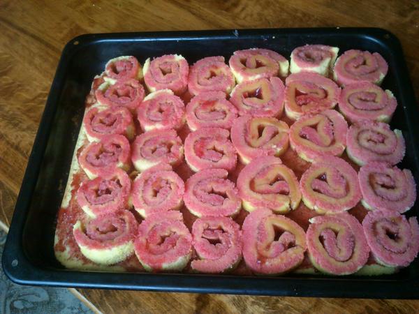 Ale mala som dojem,že cesto je prihusté a nakoľko som aj mala malý plech,bolo cesta pomenej a to som fakt na spodok dala 1/2 cesta(cca 1,5cm hrúbka). 😒
