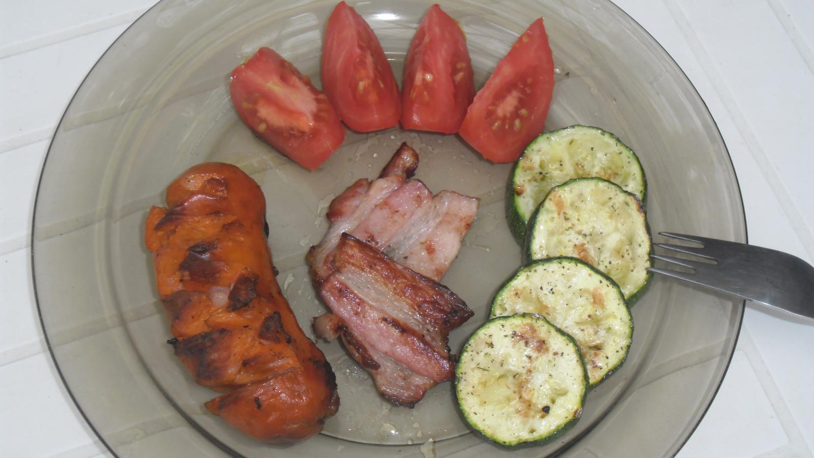 a na večeru som ugrilovala špekačky, slaninku a moju oblúbenú cukinu 😉