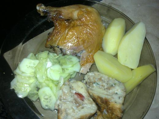 dobre ranko ak sa dnes nic nezmeni tak budeme mat kuracie stehna zapecene s kyslou kapustou a zemiakmi... :- 🙂 dezert vcera robil drahy..marhulovy kolac..jeho prve pecenie..a super.. 😀 a dnes pride striga dufam naposledy tak hadam nieco prinesie... 😀