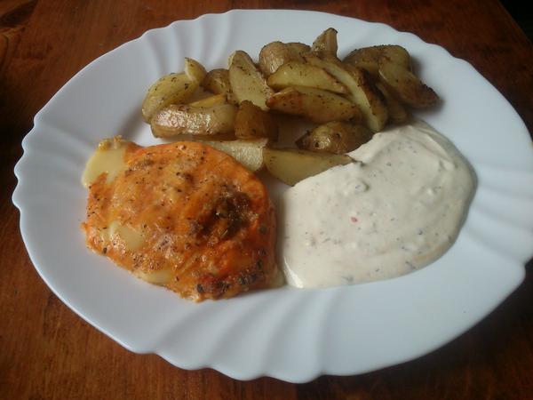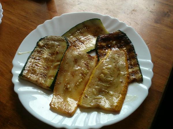 dnes som si ugrilovala cukinu k raňajkám, a dnešný grilovaný Zlatý hermelín, de´tom som nakoniec nerobila špagety,ale opiekla som im kuracie prsia a pečené zemiaky, smotanovo-bylinkový dressing 😉