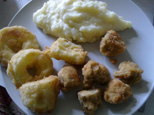 dnes máme kurací špíz...ja mám k tomu zemiakovu kašu a manželík ryžu.... 🙂 🙂 🙂