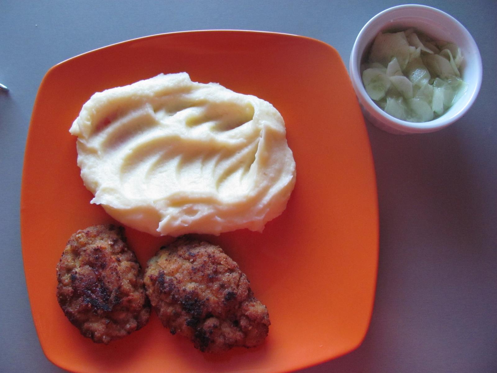 Sojova polievka so zeleninkou a mlete rezne so syrom s pyre a uhorkovym salatom 🙂