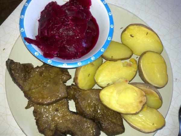 prva -foto moje dnesne menu restovana pečen,pecene zemiaky,cviklovy salat