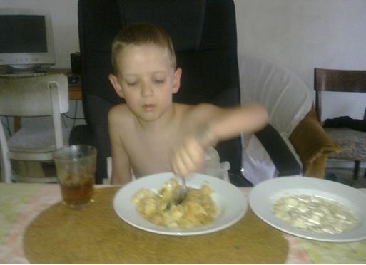 druha-Marek sa po namahavom dni u mna v praci letel najest k babke-kapustne fliacky,zeleninova polievka s knedlickami 🙂 /samozrejme že aj v praci dostal najest 😀 /