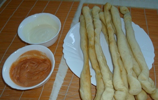 Vecera: pizza stangle so syrovou a pikantnou omackou.