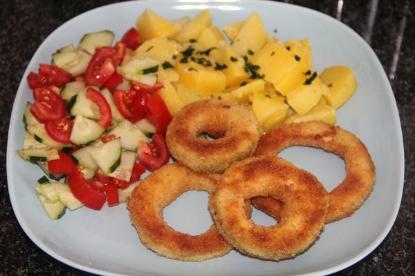 dnes sme dojedali rajčinovú polievku a robila som vyprážané filé z pangasiusa, varené zemiaky s maslom a vňaťkou, rajčinovo-cibuľový šalát a v pekárničke sa mi práve dorobila prvá várka broskyňového džemu 😉