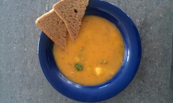 Brokolicova kremova polievka a spagety s fazulkovou omackou.