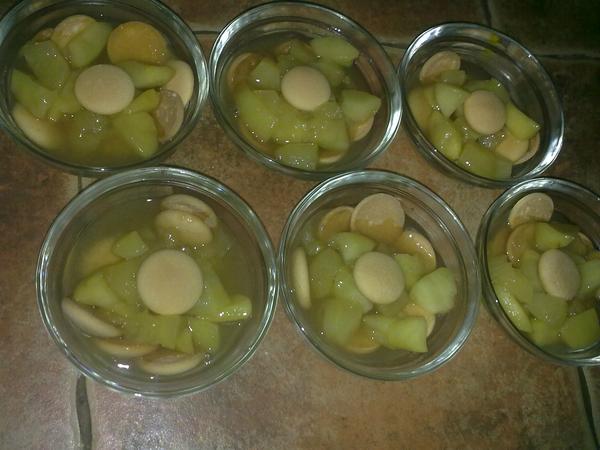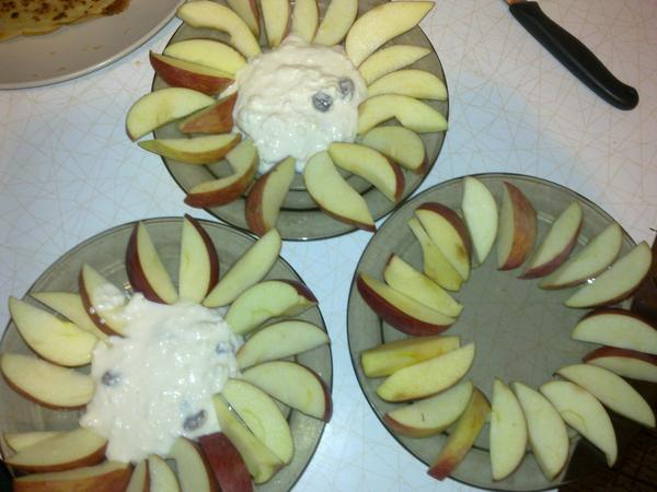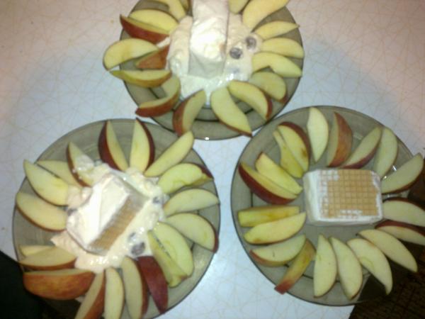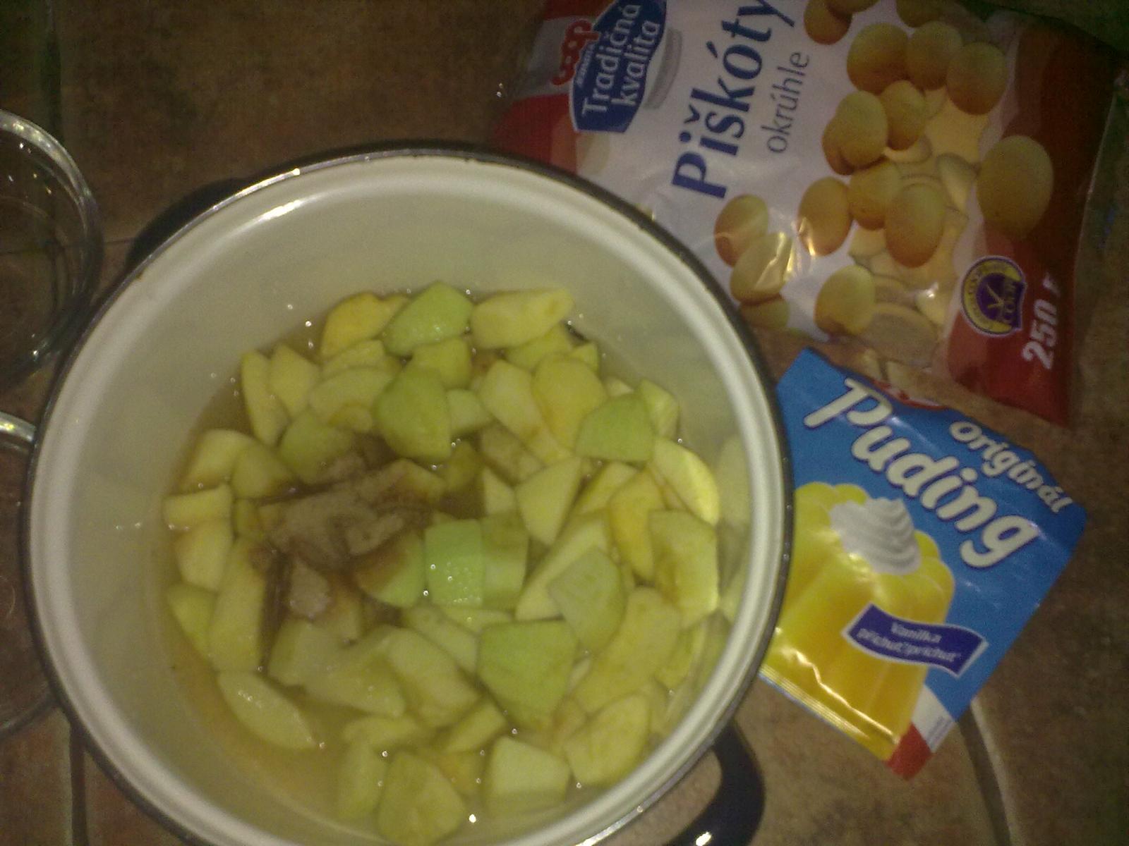 no kedže začína pomaly jeseň a nám padajú jablká na záhrade...čo s nimi..koláče a všeličo iné..robievam často pudingové ovocie kde používam ako základ práve jablká..už som robila z ananásom, jahodami, broskynami, lmoja naj top kombinácia bola : jablko, mango, hrozno..to je fakt že mňam...ale už som pridávala aj zavarené naporíklad čerešne alebo ribezle....stačí rozvarit jablká a iné ovocie na troche vody pridať za ližičku alebo dve rozmiešaného pudingu a dochutit si podla potreby cukor, citron, škorica, med...niečo ako presnidávka len s piškotami...je to mňamka a stačí to trochu vychladené vyliat do zatváracej nádoby dat do chladničky a desiata do školy je ako vyšitá 🙂