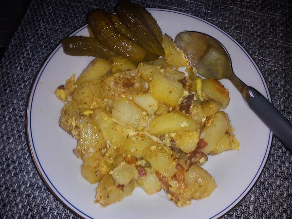 fotečky-vcerajsie dojedanie-zemiakova kasa s uprazenou cibulkou a udene stehno-plnena paprika kapustou