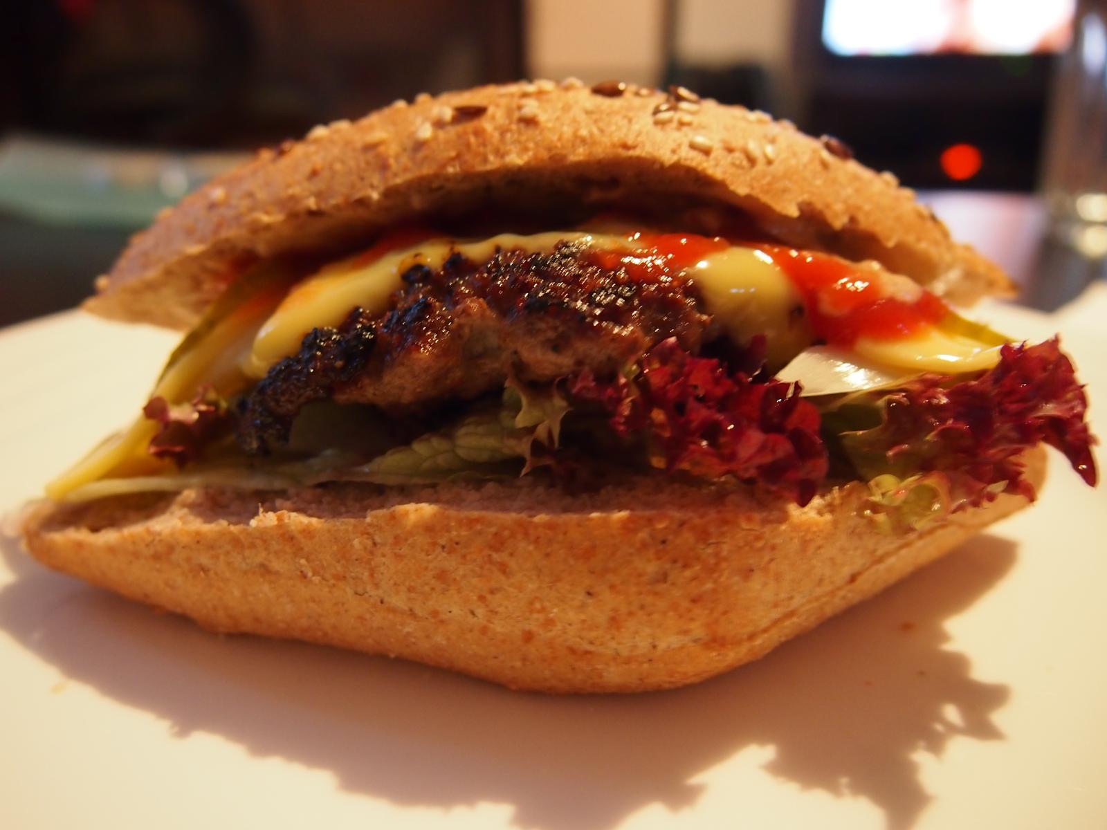 @lululka555 Jasne 🙂. Mleté mäso, soľ, čierne korenie, mletá rasca, cesnak 1-2 strúčiky, polovica cibule nakrájaná na kocky, dve lyžice strúhanky, 1 vajíčko. Všetko spolu zmiešaš a urobíš si také dosť tenké placky - počas smaženia sa dosť stiahnu a naberú na hrúbke. Opečieš ich na troške olivového oleja z každej strany a ku koncu na ne položíš plátok syra. Na žemľu som dala trochu horčice, light kečup, lolo šalát, trochu cibuľky a pár plátkom kyslých uhoriek 🙂. Ja som to všetko robila vo FIT verzii takže celozrnné pečivo, čisto hovädzie mäso (vraj by sa malo miešať s bravčovým), light kečup, light syr... Dobrú chuť 🙂