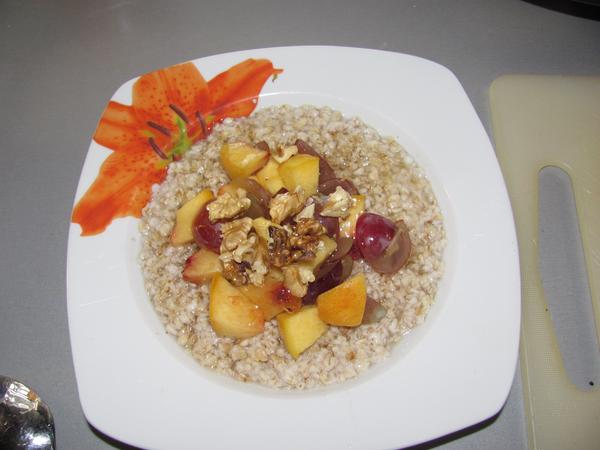 Caute kocky my dnes brokolicovu kremovu a ostatne varil tato - hovadzie burgundske a cheesecake. A na foto je moja ovsena kasa s dusenym jablckom so slivkami a hrozienkami, hovadzie burgundske a cheesecake 🙂