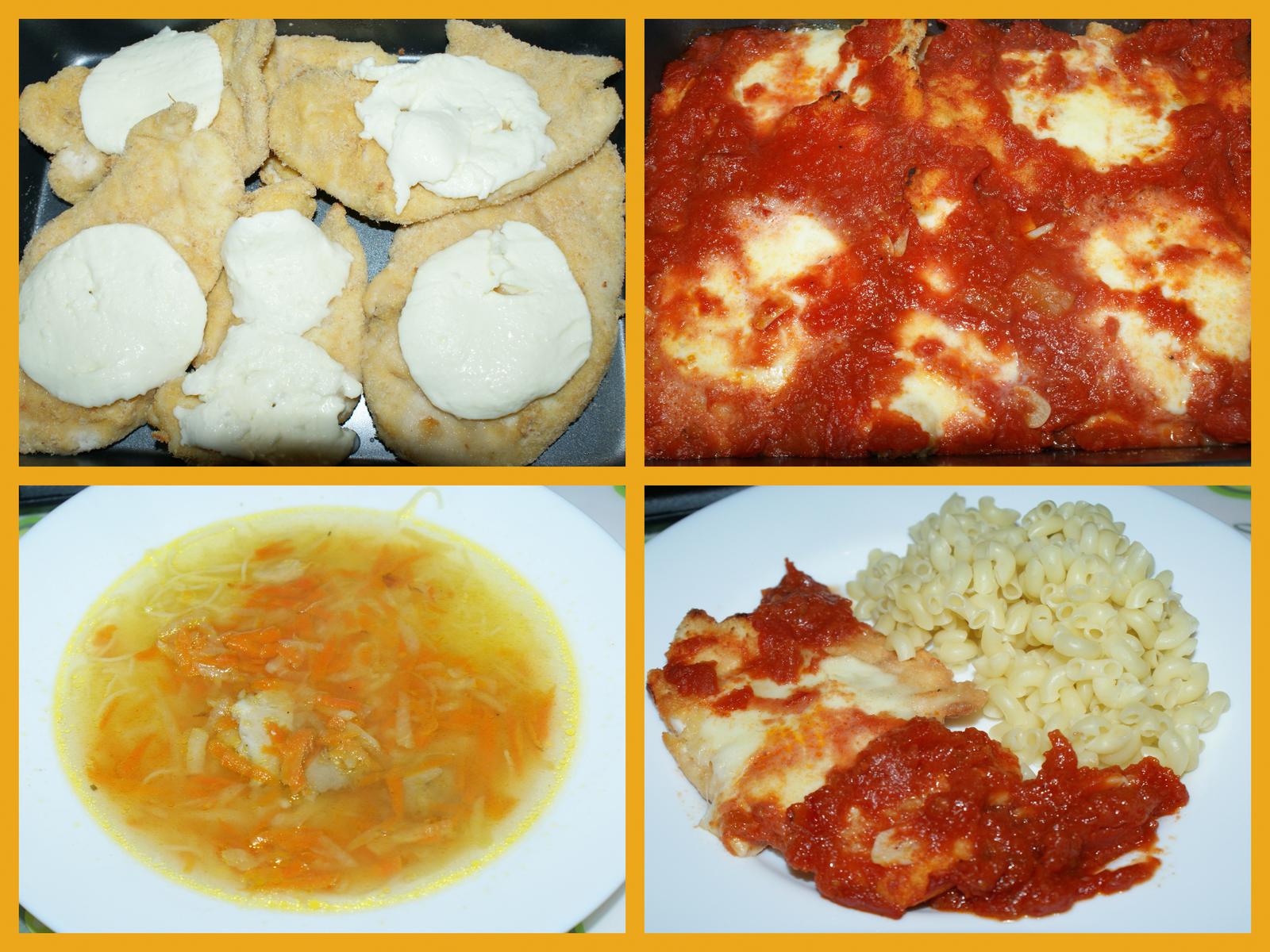 @womankc paci sa : kuracie prsia rozrezat napoly, vyklepat na cca 1cm hrubku, osolit, obalit do rozslahaneho vajicka a do struhanky pomiesanej s parmazanom - zakryt foliou a odlozit do xladnicky... na oleji spenit cesnak, zaliat krajanymi paradajkami (+sol, cukor, korenie) - varit cca 5-10min. Ruru zapnut na gril, prsia ugrilovat z kazdej strany cca 5min(ja som dala mensiu teplotu a nexala som to dlshie), do pekaca vyliat paradajky, na to prsia, na to mozzarelu (som sa sekla a urobila to naopak) a dat zapiect naxvilku, kym sa mozzarela roztopi (cca4min). su vyborne stavnate ;) a k tomu cokolvek - ryza, cestovina, zemiakova kasa.... dobru xut