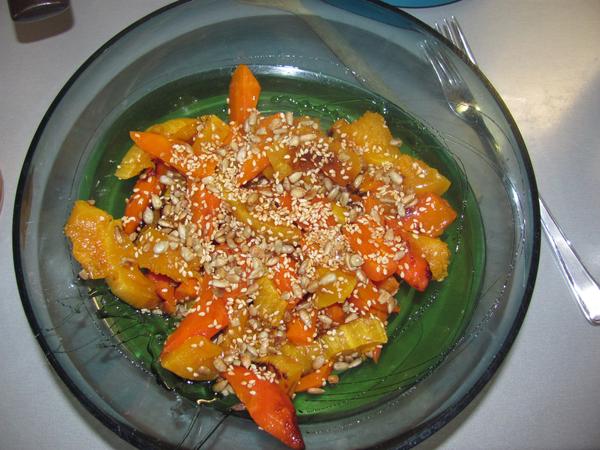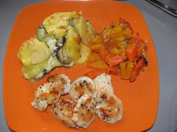 ...zapekaná tekvica, dusená pečienka s ryžou... 🙂