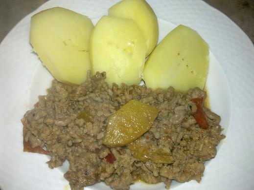 Dnes bol hovadzi gulas a polenta. Maly to mal so zemiakmi a vcera som uvarila ragu takze vecer bude cestovina alebo urobim lasagne a k tomu salat. Mam novy stroj od moulinex, takze momentalne vsetko struham a hrajam 🙂