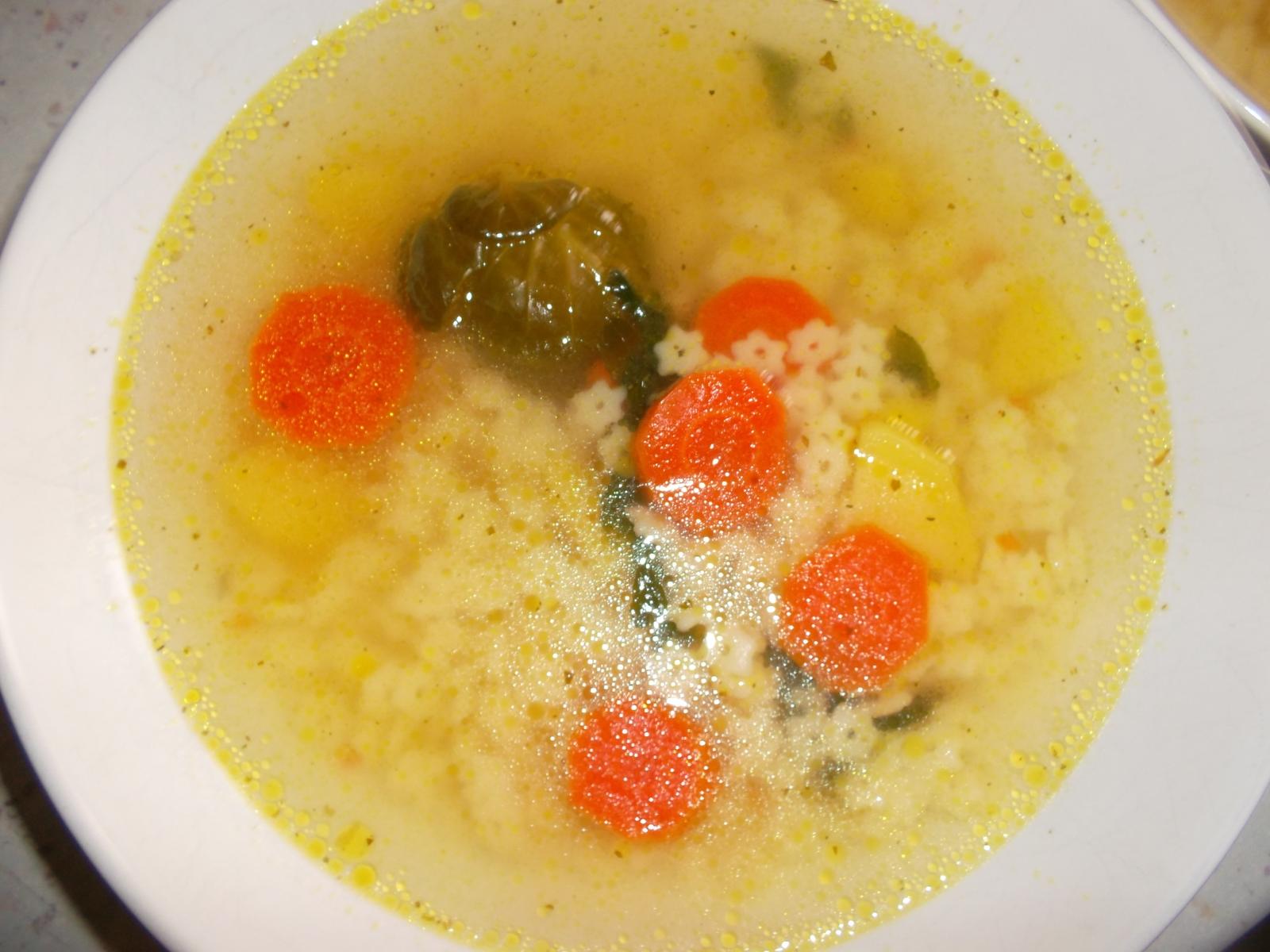 My dnes zeleninova polievka s kuracim maskom od vcera a bryndzove cestoviny s koprom.