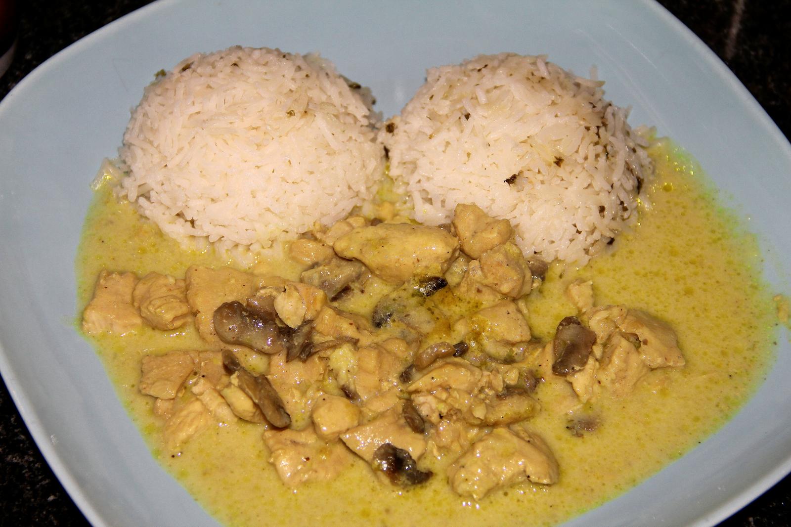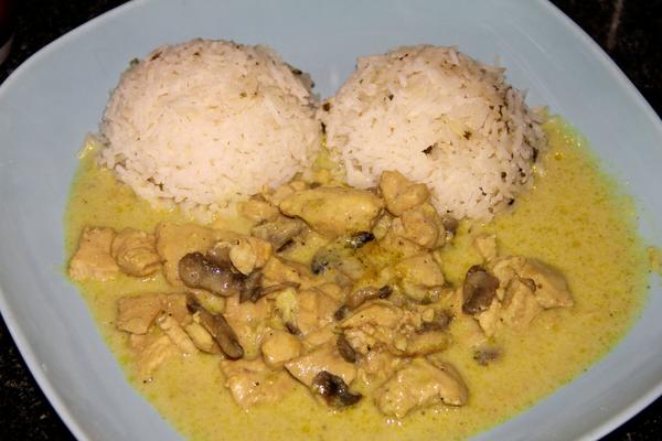 kuracie sote na mandiach, alebo vyprazany kuraci rezen v cesticku v omacke s mandlami a ryza