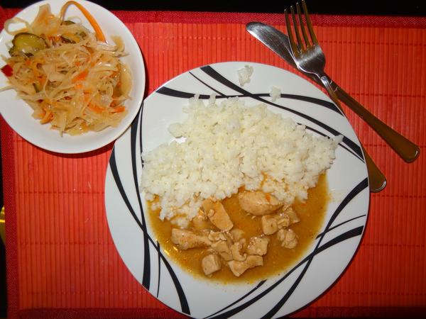 dnes zeleninová polievka, kuracie mäsko z prsíčiek na šťave s ryžou, k tomu kapustový šalát (z lídlu), a teraz poobede makovo jablkový závin na pochutenie