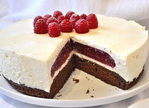 Je tam len 3-cm korpus a potom len tvarohová plnka, malinová želatína a zase tvarohová plnka.