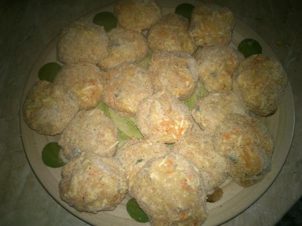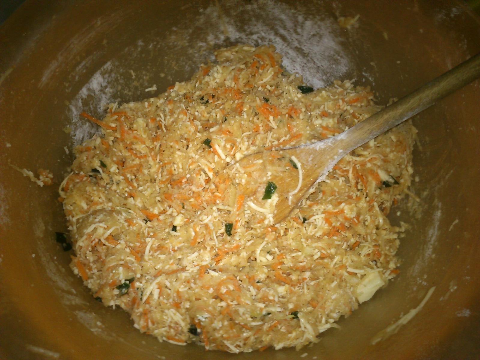 dnešné zeleninovo-syrové fašírky, čo chladnička dala a sú Mńam, postrúhala som najemno cukinu, mrkvu, údený tvrdý syr, do toho vajíčko, korenie na fašírky, soľ, vegetu, cesnakovú pažítku, cesnak, strúhanku, sneh z bielkov a trošku prášku do pečiva, a že aké super nadýchané, k tomu varené zemiačky a zo včera domáca tatarka 😉