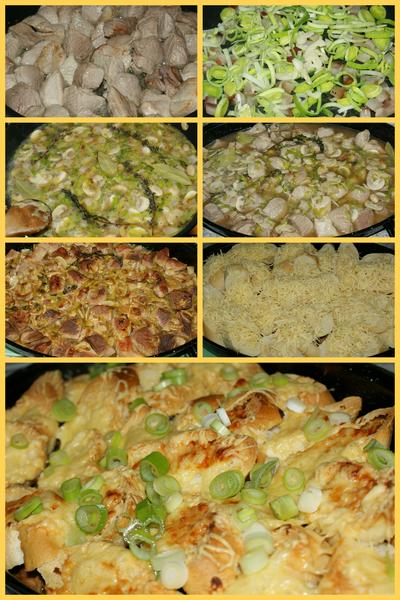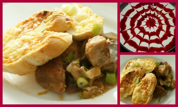 dnes uplne ze mnam - polievka zo vcera a bravcove kocky so sampionmi a zapecenymi bagetkami a tvarohovo-malinova torticka (piskota, malinove zele a tvarohovo-smotanovy krem)