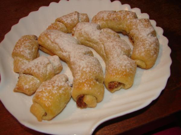 Pripravíme si kvások a vypracujeme cesto.Necháme ho vykysnúť.Urobíme z neho 6 bochníkov a necháme ich ešte podkysnúť. Každý bochník vyvaľkáme a rozrežeme ho na 8dielov.trojuholníky zrolujeme od širšieho konca smerom k užšiemu. Potrieme rozšľahaným vajíčkom, posypeme rascou, hrubou soľou, sezamom a upečieme .