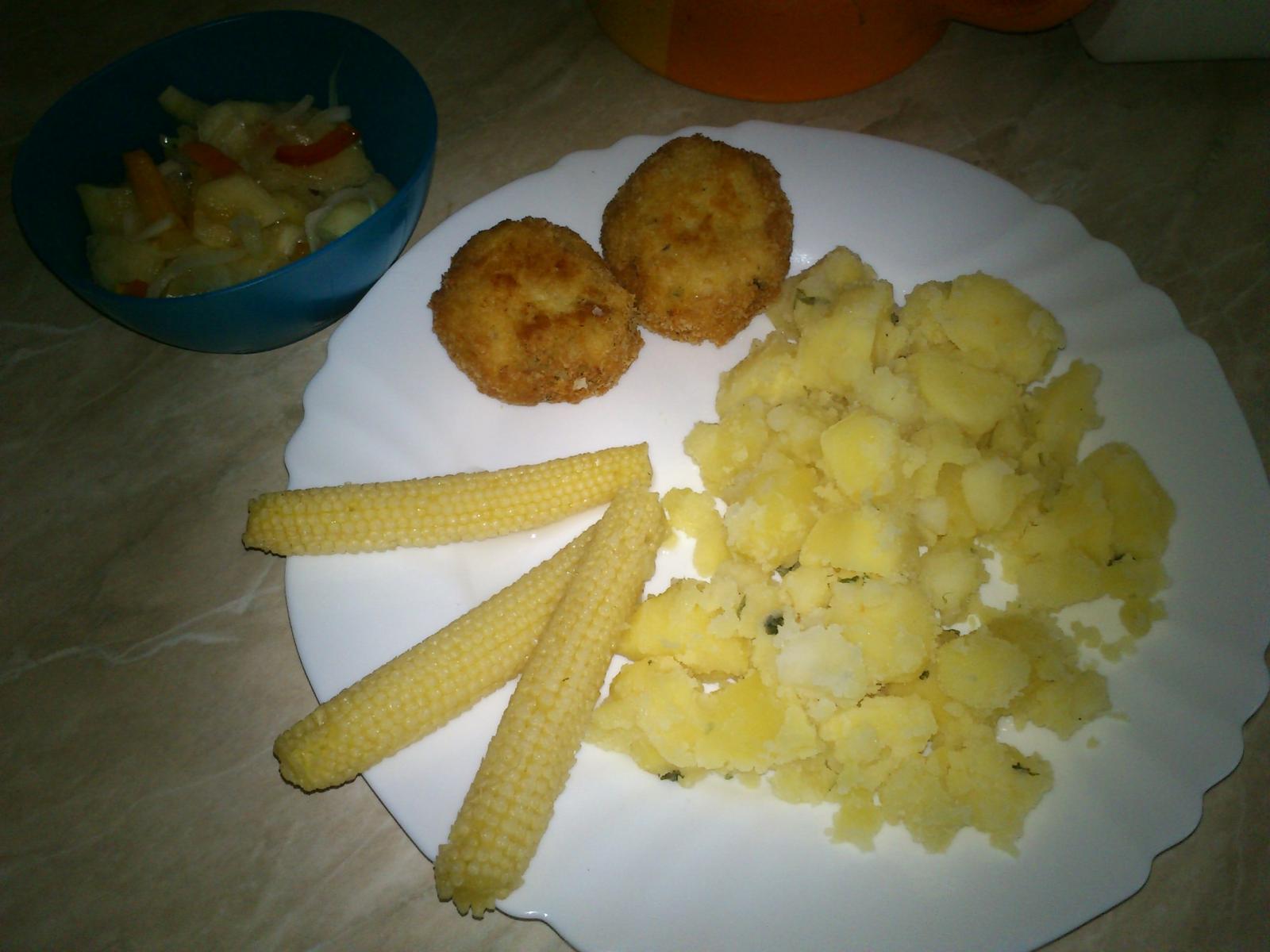 v stredu brokolicova, zemiaky s cesnakom, cibulou + karfiolove fasirky + salat z kys.kapusty, mrkvy
