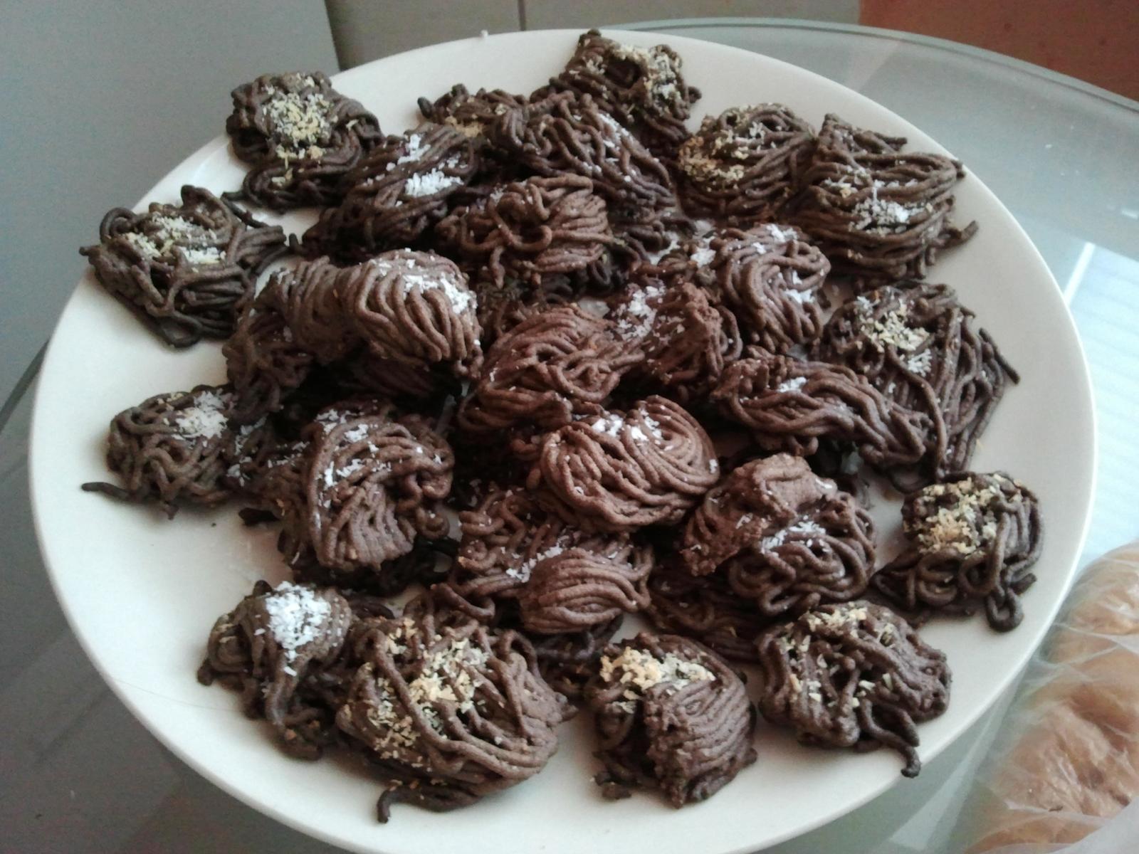 my dnes asi špagety, včera som piekla orechové kvietočka,kokosky a robila som šuhajdy, dnes musím linecké a medovníčky