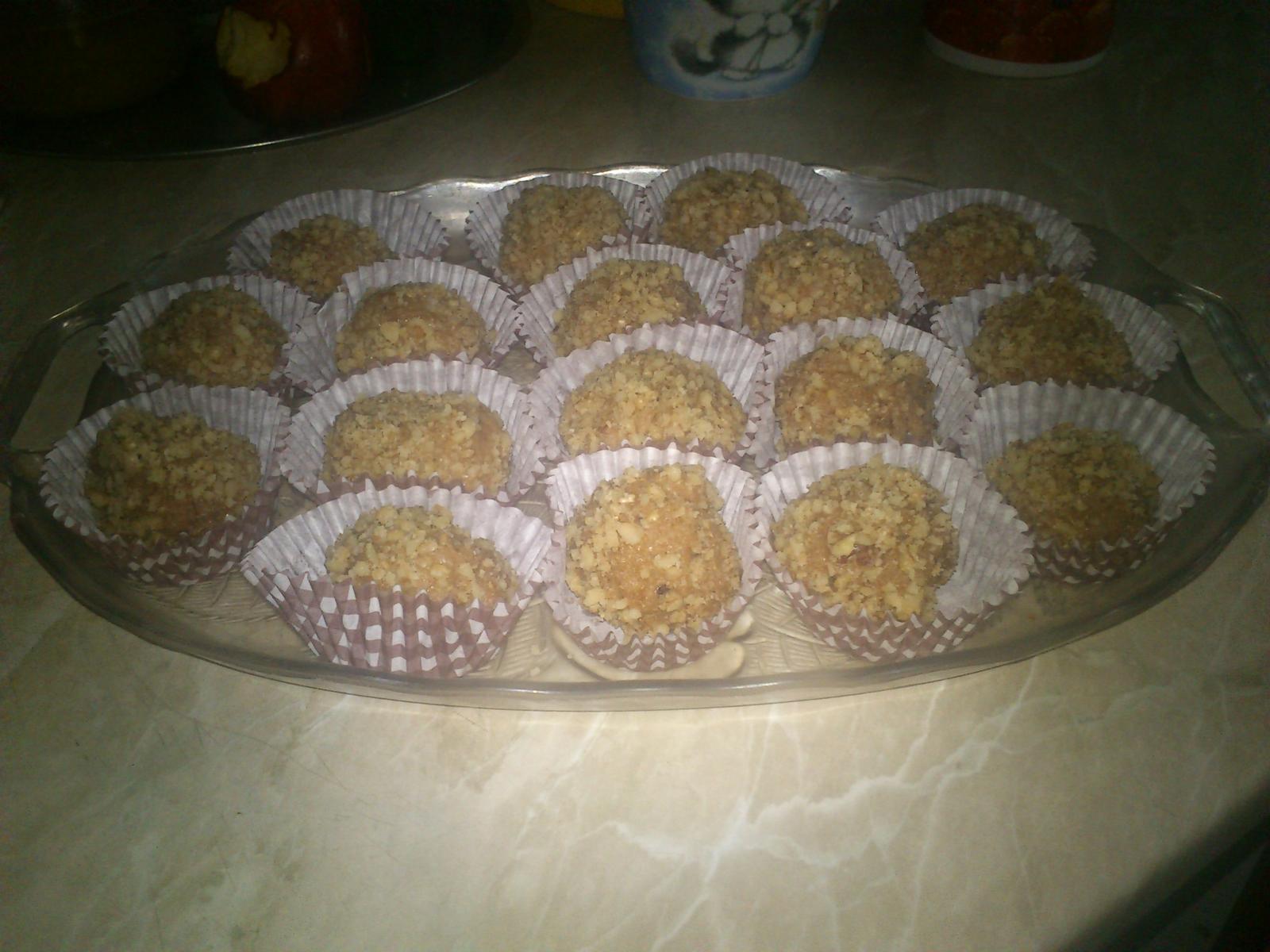 dobré ránko, idem vás dočítať, (zase som tu pol dňa nebola ) a popozerať, čo všetko dobré ste navarili a napiekli 😉 ja dnes klasika nevarím, dojedáme nedeľné menu, ale včera som neplánovane robila guľky Marlenka - zostali mi odkrojky z pardubických perníčkov, tak som to zužitkovala, dovnútra som dala arašid a obalila v orieškoch a robila som ešte Vybehlíkov - duté orechové tortičky 😉