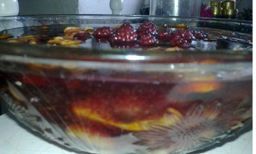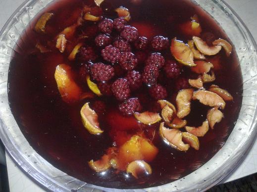 ja som tento pre alko zvolila červene vino a becherovku plus doliala ribezlovým džusom-ovocie čo dom dal-mandarinky,pomaranč,kusok pomela.kompot višnový/zavaram s rumom/ a broskynovy,mrazene černice a jahody a susene hrozienka a jablko 🙂
