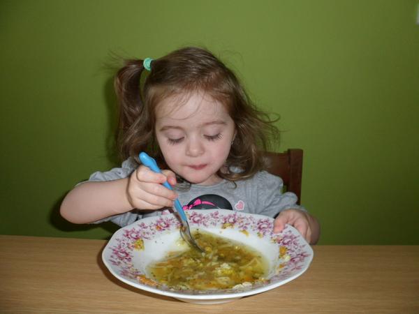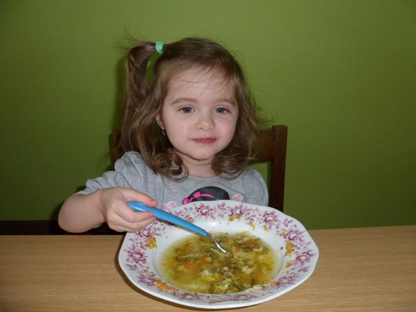ja som dnes robila brokolicovu polievku s kukuricou a mrvenickou a pecene buchty, tu je dokaz, ze polievka bola vyborna, kedze sa nou s chutou krmila aj nasa bambulka 🙂 , predpokladam, ze buchty dnes zmiznu, ked pride domov mm a synator 😀, zajtra budem robit bryndzove halusky, mnaaam