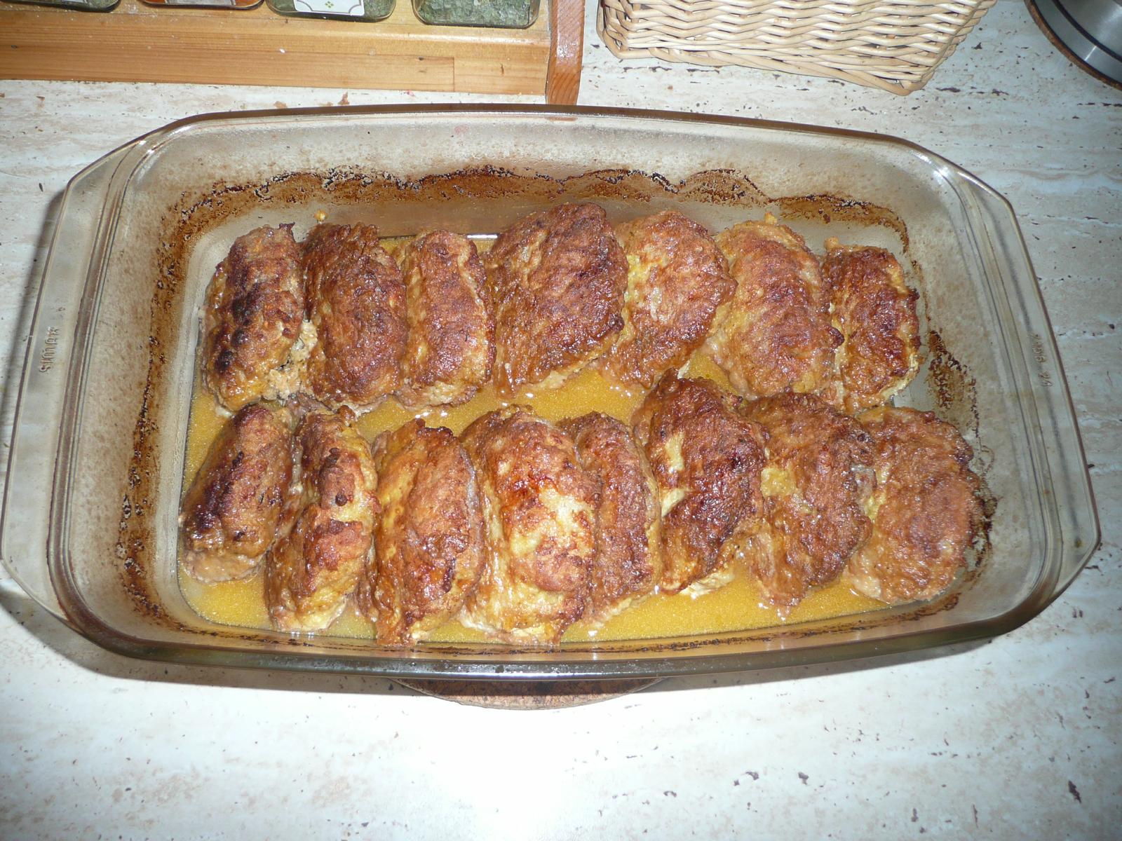 @maba Ahoj,urobim si fasirkovu zmes-davam do nej aj kyslu smotanu a trocha postruh.syra,urobim fasirky,obalim v struhanke,vo vajicku,vyprazim na oleji,dam do zapekacej misy,podlejem "ochutenou vodou-sol,vegeta,trocha kecupu,horcice,soj.omacky,cesneku,zalejem to aby boli fasirky do 3/4 ponorene,zakryte peciem 45min pri 180 c ,potom odokryjem necham trocha pripiect,su vyborne stavnate,mm klasicke fasirky nechce,ale tieto ano, vcera ich jedol len s chlebom,len co som ich dorobila 😀