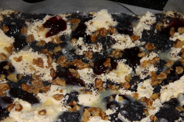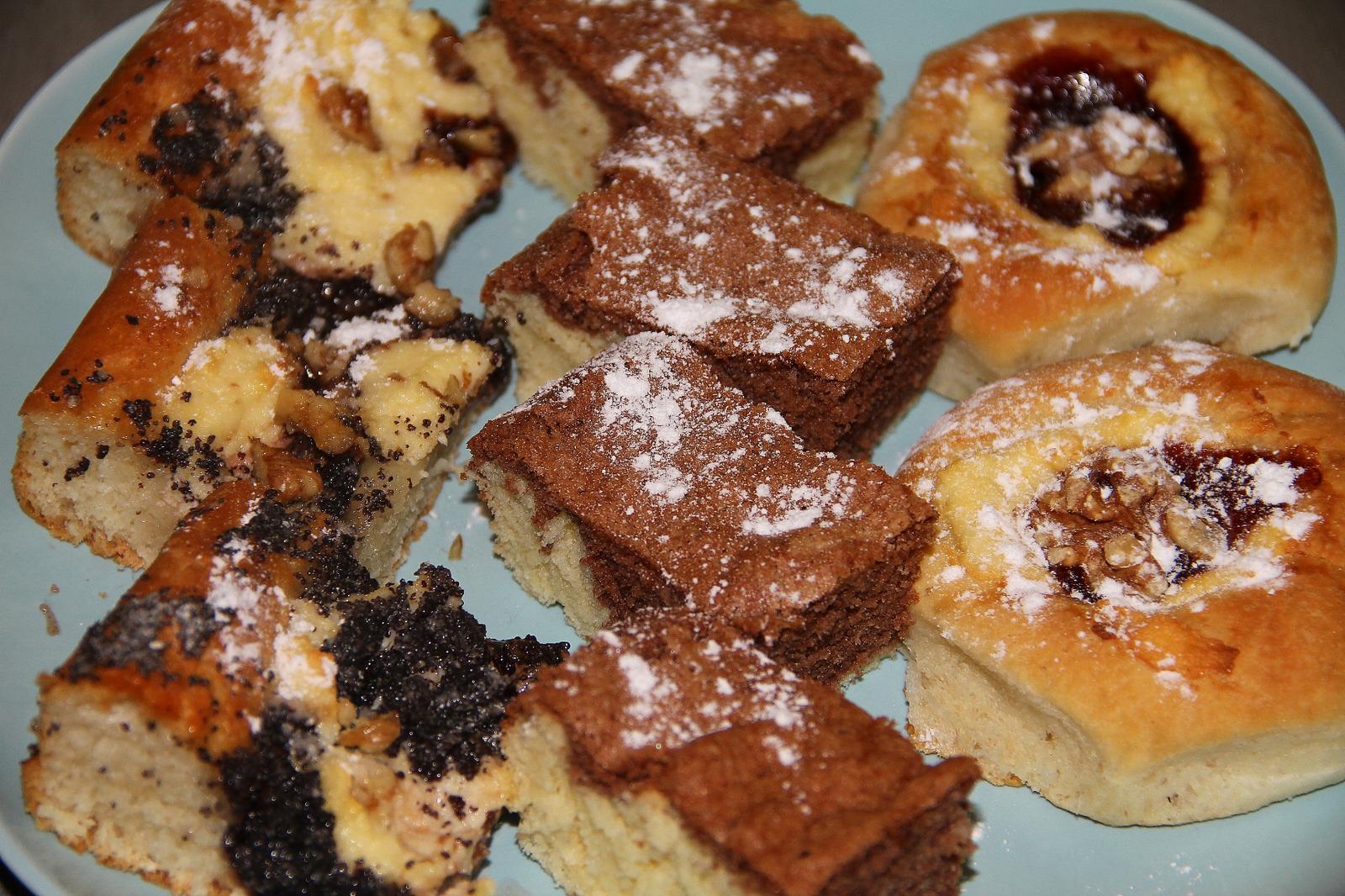 my sme sa vcera vratili uz po tme domov,obedovali sme vonku a vecer som si este zamiesila kysnute cesto a urobila som zopar moravskych kolacov a potom este na cely plech taky miesany kolacik,trosku tvarohu,slivkoveho lekvaru,maku a sekanych orechov a poliala som to maslom a este babovku,ale upiekla som mu nakoniec na plechu,uz sa mi nechcelo cakat tristvrte hodinu na nu,tak isla pekne na plech 🙂 a mohli sme si uz len mlsat pri telke