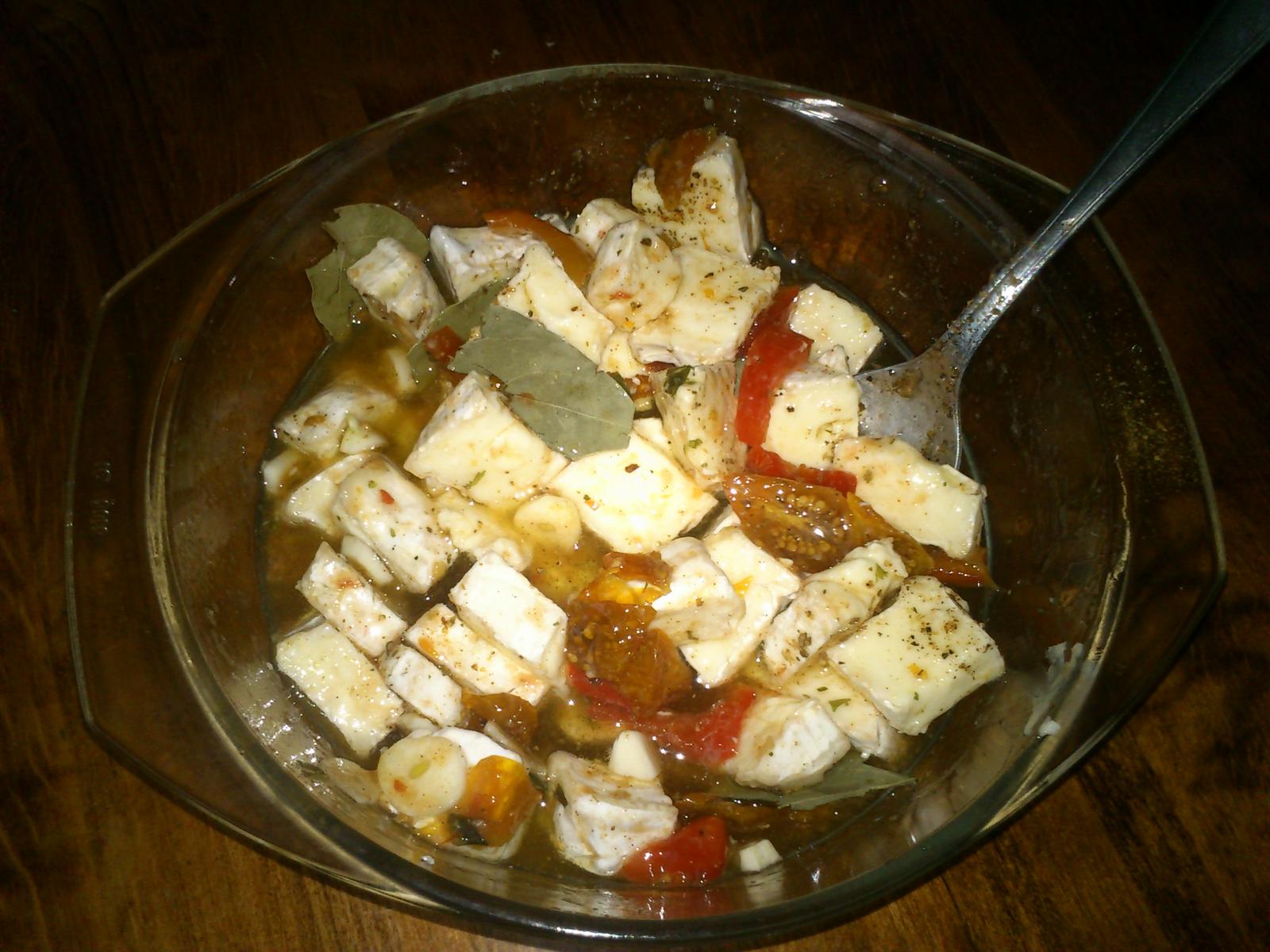 @saxana36 možností je veľmi veľa, ja som kedysi robila, že som ho len prekrojila na dve kolieska a naložila do pohára s olivovým olejom, koreninami, cesnakom a pod, ale takto mi to chuití viac, nakrájam na trojuholníčky, pridám koreniny podľa chuti, bylinky, hlavne veľa cesnaku, môžeš aj cibuľu, prípadne feferónky, vegetu, bobkový list, čili, proste, čo máte radi, pridáš olivový olej, premiešaš a dáš do chladničky, mal by odstá´t pár dní, aby sa chute spojili, ale ja nevydržím nikdy, hne´d na druhý deň musím chutna´t 😀