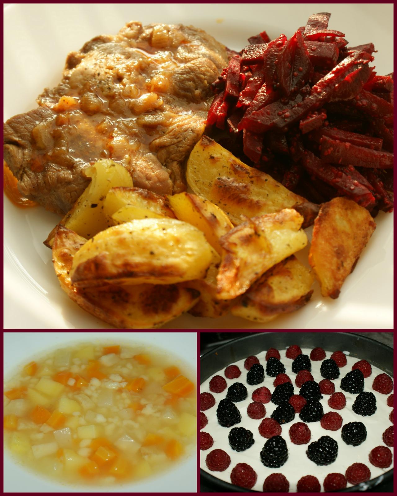 ahojte, ja dnes zeleninove rizoto (som sice neveriaca,ale v piatok mame aj tak post), zajtra upeciem v trube fasirku a k tomu cukinovy privarok a zemiaky, vecer sa pojde na pizzu. v nedelu bude pecene kura a ryza. polievku este nejaku vymyslim, nebudem robit hovadzi vyvar ani nic podobne, snad zeleninovu, brokolicovu alebo sosovicovu. Podla chute a nalady. 🙂