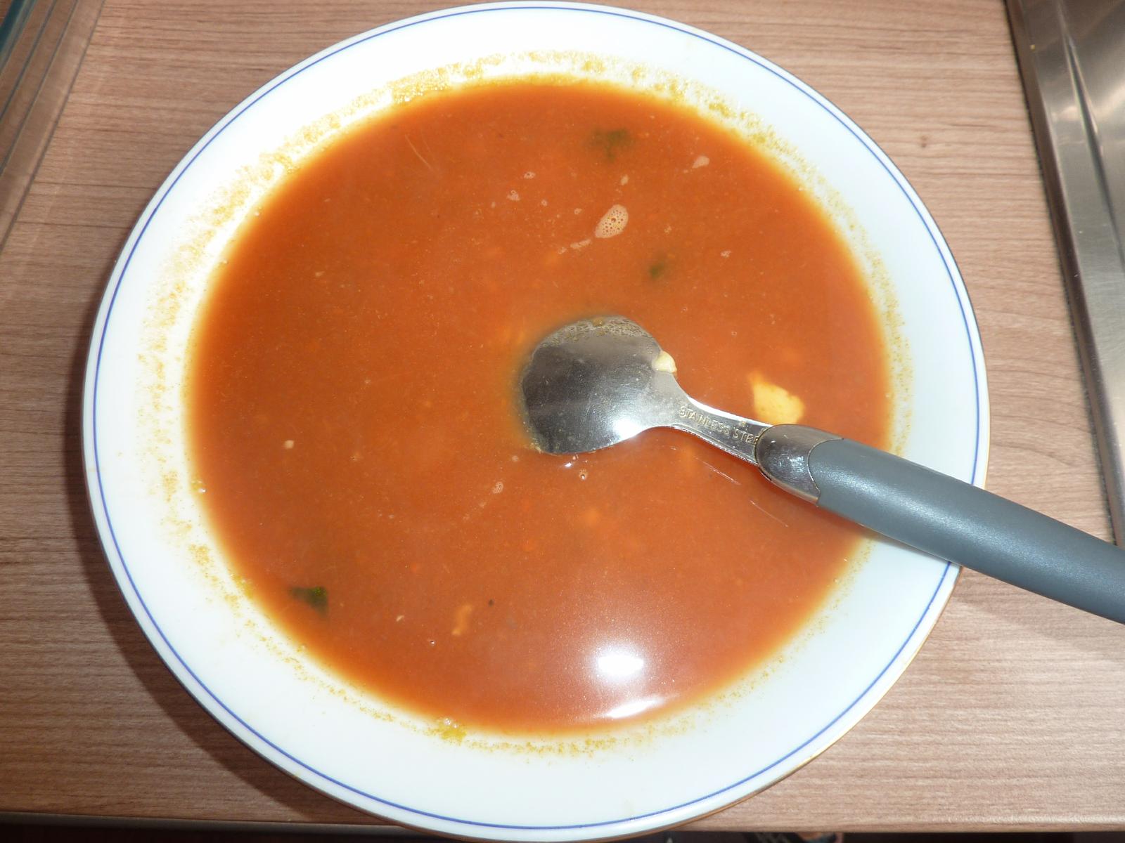 Dojedli sme paradajkovu polievku a druhe ryza a zapekane morcacie s broskynou.
