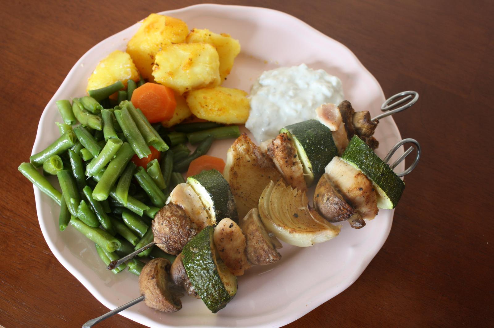 Ja dnes len na rychlo, ale celkom chutne, spizy so zeleninoua kuaracimi prsiami, opekane zemiaky, nivovy dip a parena zelenina.