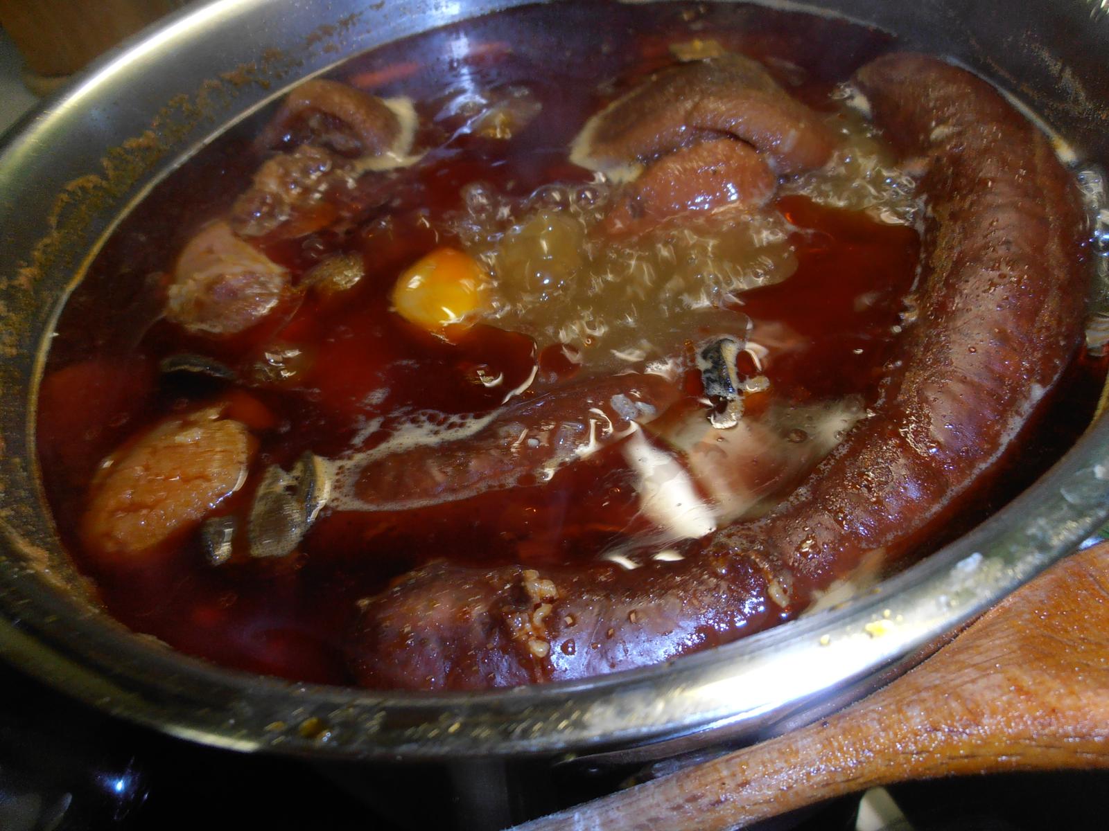 uvarit 1 a pol PL octu,pol PL pras.cukru.2 PL oleja,1 a pol PL horcice a nechat vychladnut