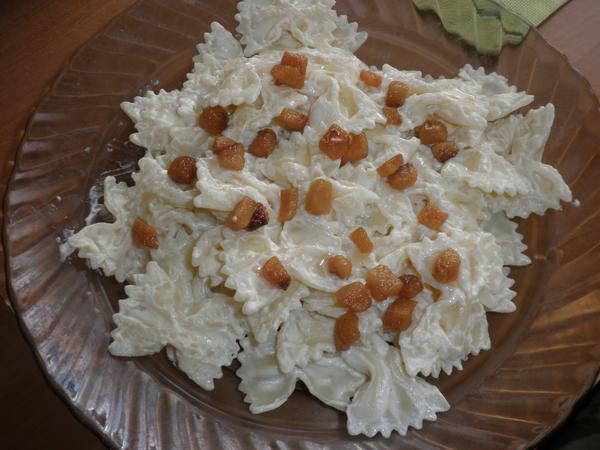 a náš dnešný obed falošné bryndzové halušky=mašličky 😀