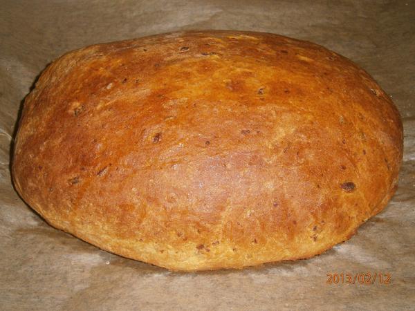z mlieka, cukru a kvasníc som si urobila kvások, pridala do ostatných surovín a vypracovala ručne cesto, ktoré som nechala kysnúť 30 minút ... potom som ho dala na dosku, ešte raz premiesila, vytvarovala do tvaru bochníka, dala na plech vyložený papierom na pečenie a nechala ešte kysnúť dalších 15 minút ... nakysnutý bochník som potrela slanou vodou a dala piecť na 15 minút na 200 stupnov a zvyšných 45 minút na 160 - 170 C - regulovala som, záleží od rúry akú kto má 🙂