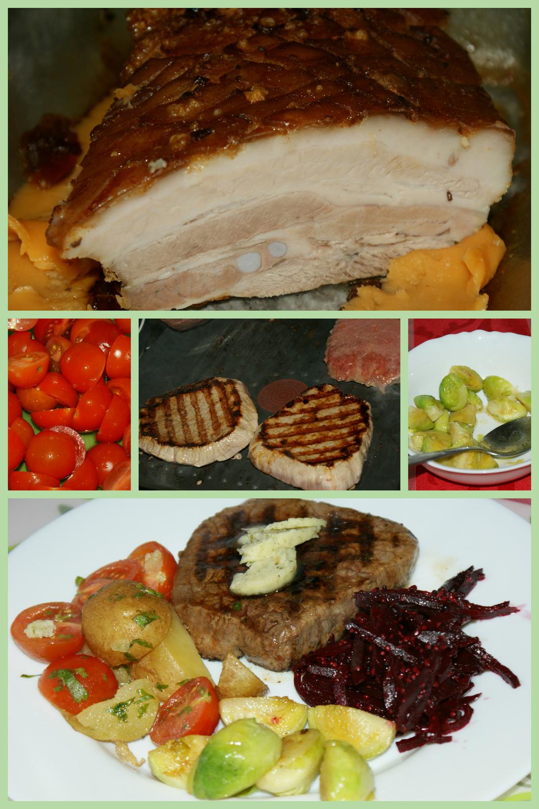 hrachovy krem, krutony na oliv. oleji, vysmazana treska a zemiaky s rozmarinom, cvikla 🙂