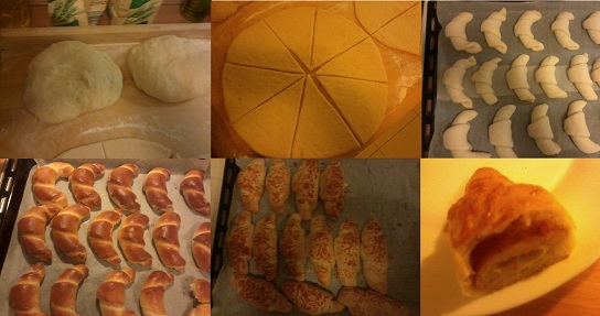 Mňa znovu chytila chrípka, takže dnes len rohlíčky v štýle "lupáčiky" bez plnky a plnené ako pizza rožky.