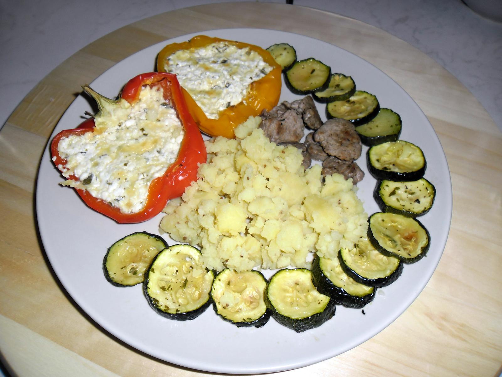 my sme dnes dojedli polievku zo včera a druhého zostalo pomenej tak som musela dorábat k masku zemiačiky dnes len varené a ešte som spravila zapekanú papriku plnenú cottage syrom a pečenú cukinu a idem varit na zajtra lebo od rána ideme s detmi k lekárovi a tak aby sme mali čo papat ked sa vrátime 😀
