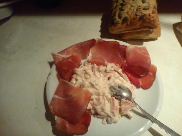 My dnes mame obed zo vcera - hrstkovu polievku a zapekane cestoviny s kukuricou a hraskom.