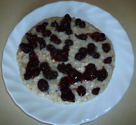 Dnesne ranajky - ovsena kasa s kompotovymi ciernymi ribezlami a ku kavicke jablkovy pernik