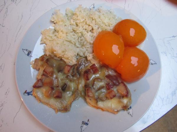 u nas fazulova polievka s mrkvou a udenym tofu a ryzovy nakyp s marhulami a ribezlami 🙂