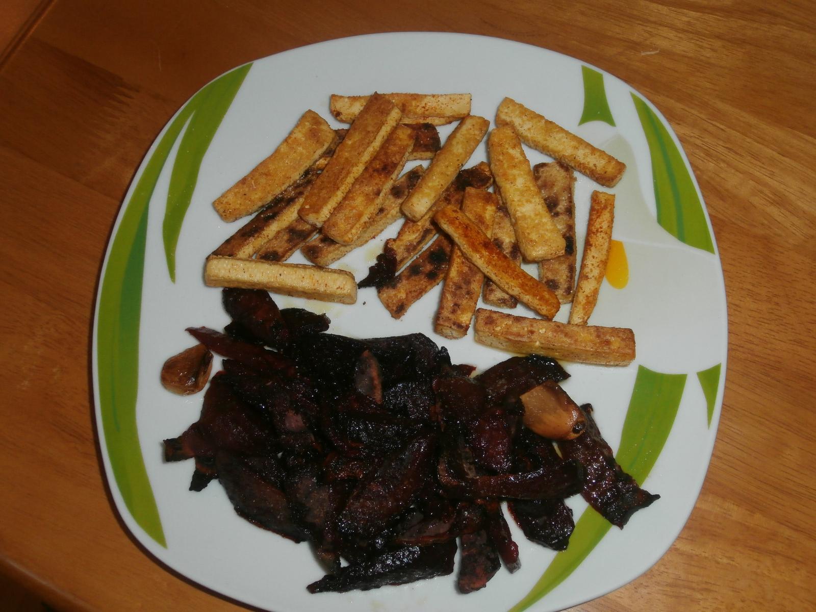 maso pokrajat na sliziky.Vsetko spolu zmiesat,nechat postat24 hodin,(ja som sa ponahlala a nechala som iba 2 hodiny),potom prudko oprazit,ak chces štavu dak dolej trochu vody a povar este.ja som dala viac masa a nechybalo tomu nic,bolo to dobre.podavame ryzou alebo hranolkami..