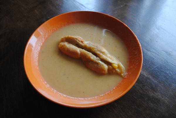 dojeme vcerajsiu zeleninovu polievku, zemiakova baba s hribami